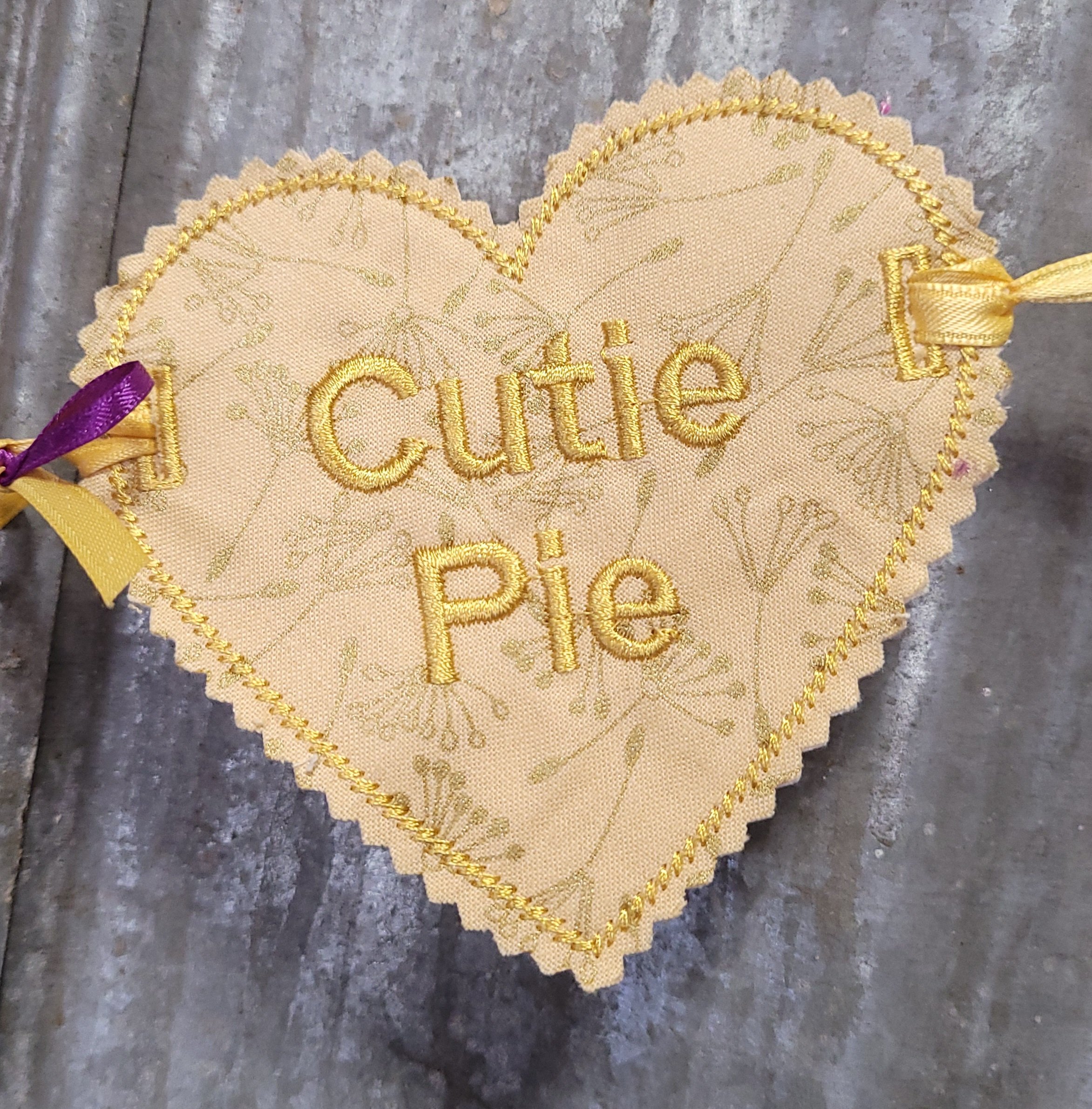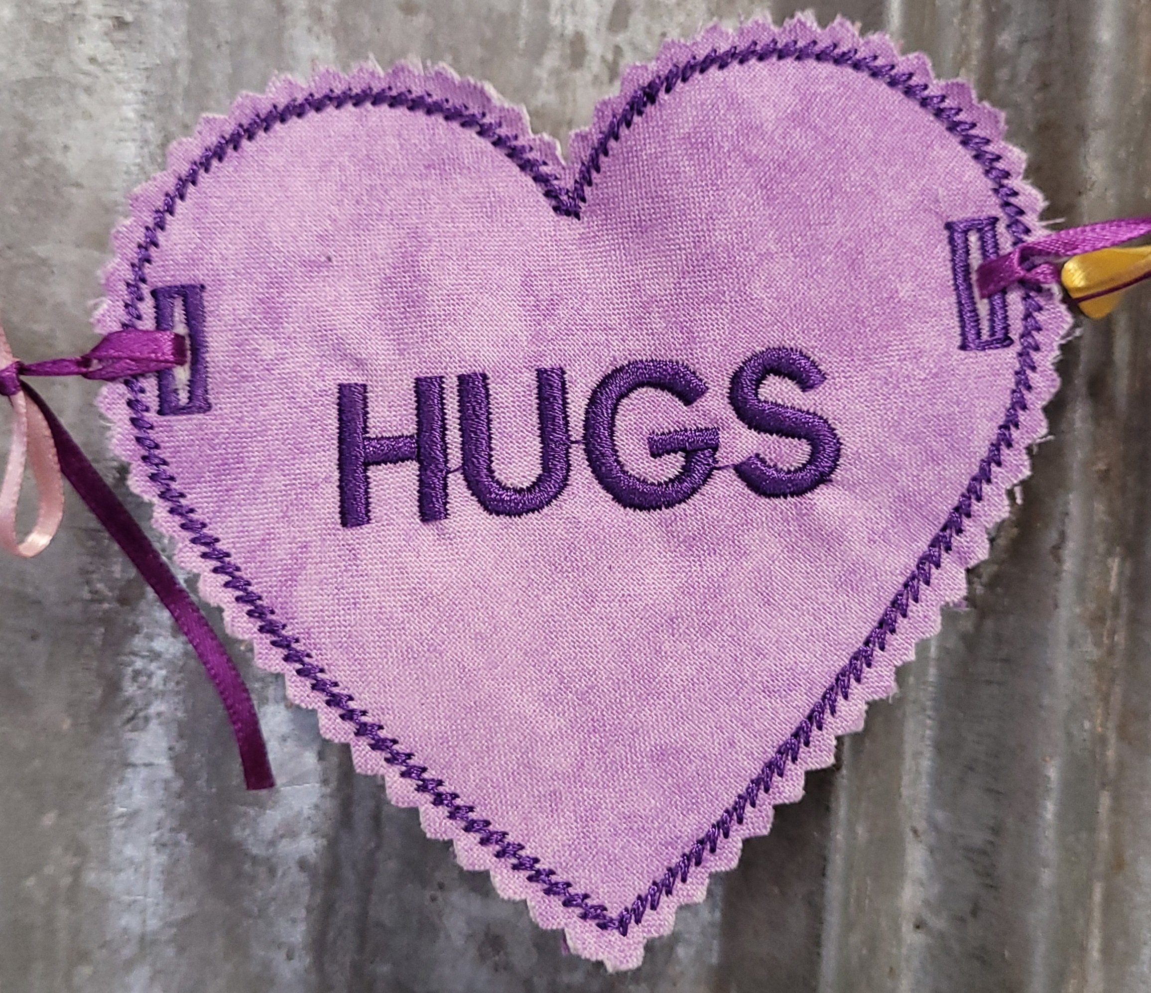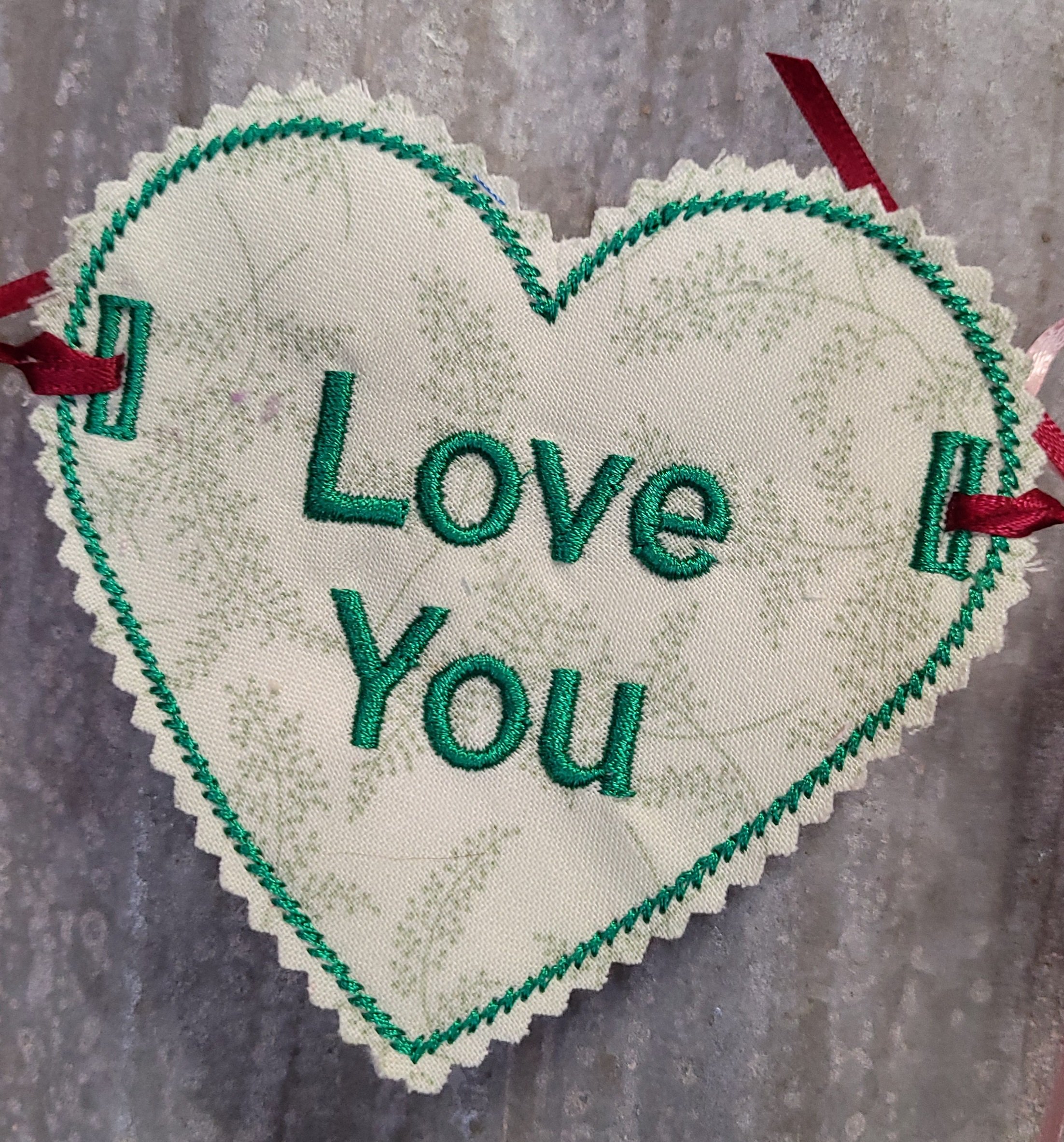 Not just for a valentine! Order customized hearts with your own message or your sweethearts name. Subject to available fabrics and thread.