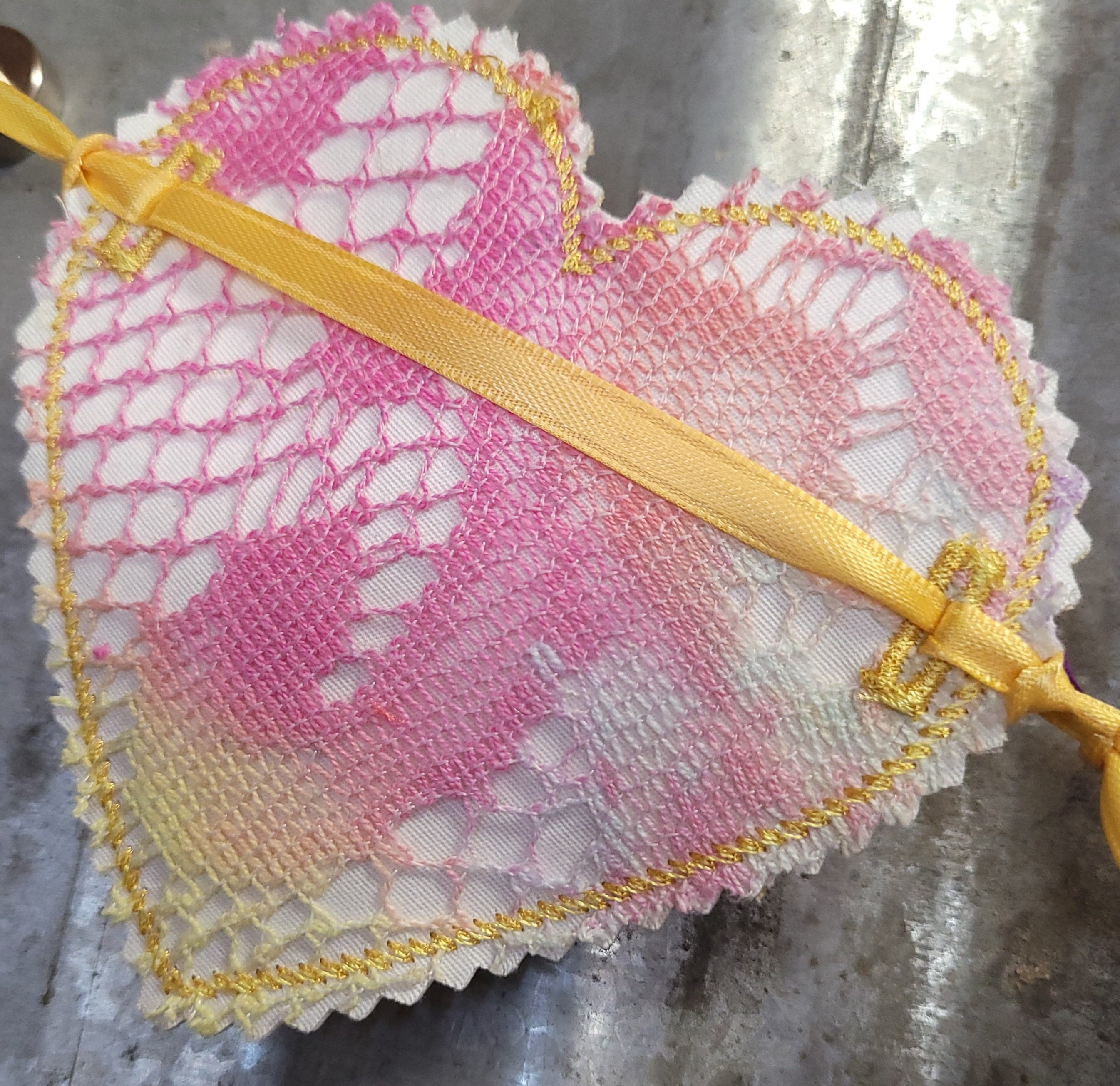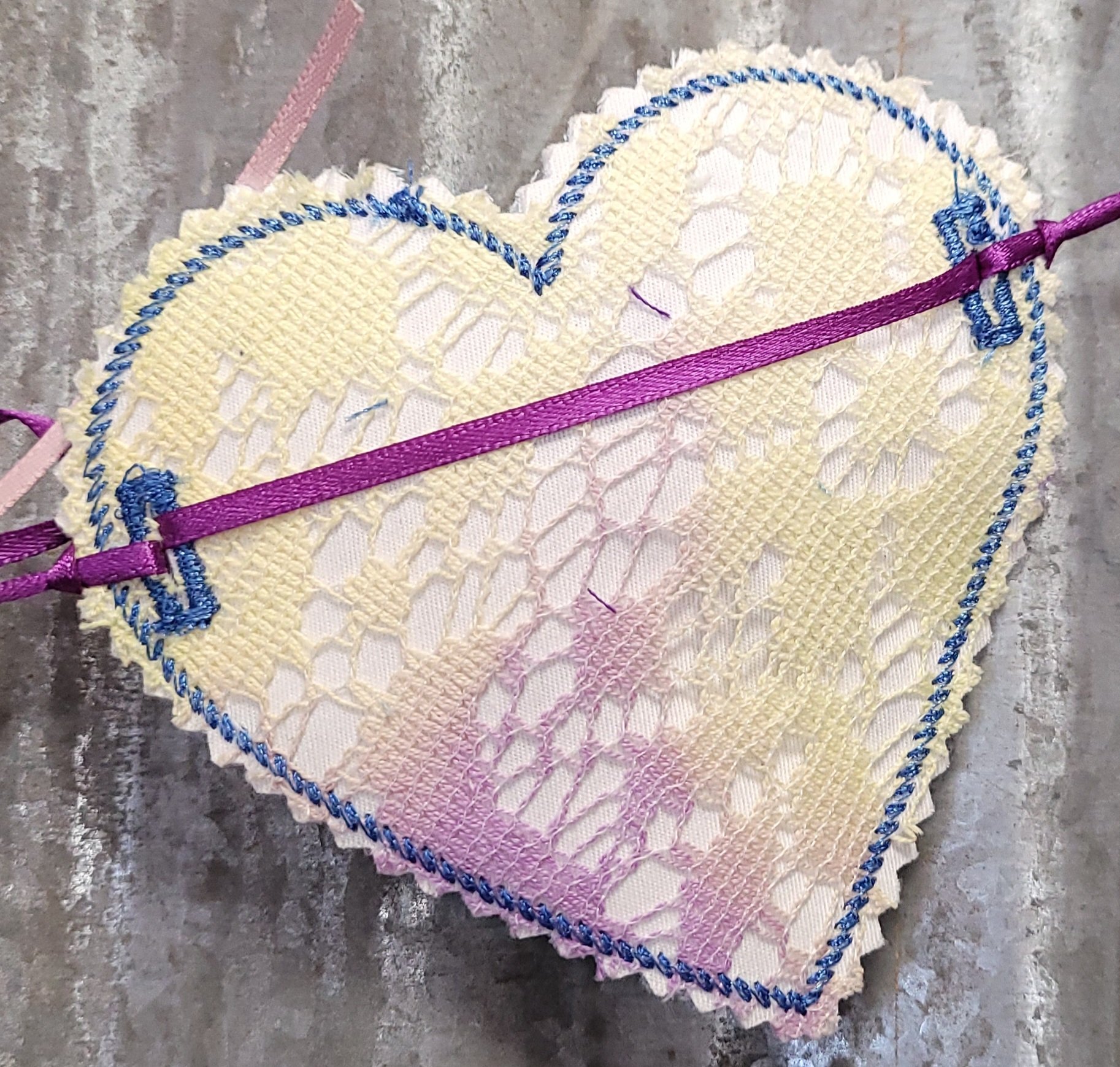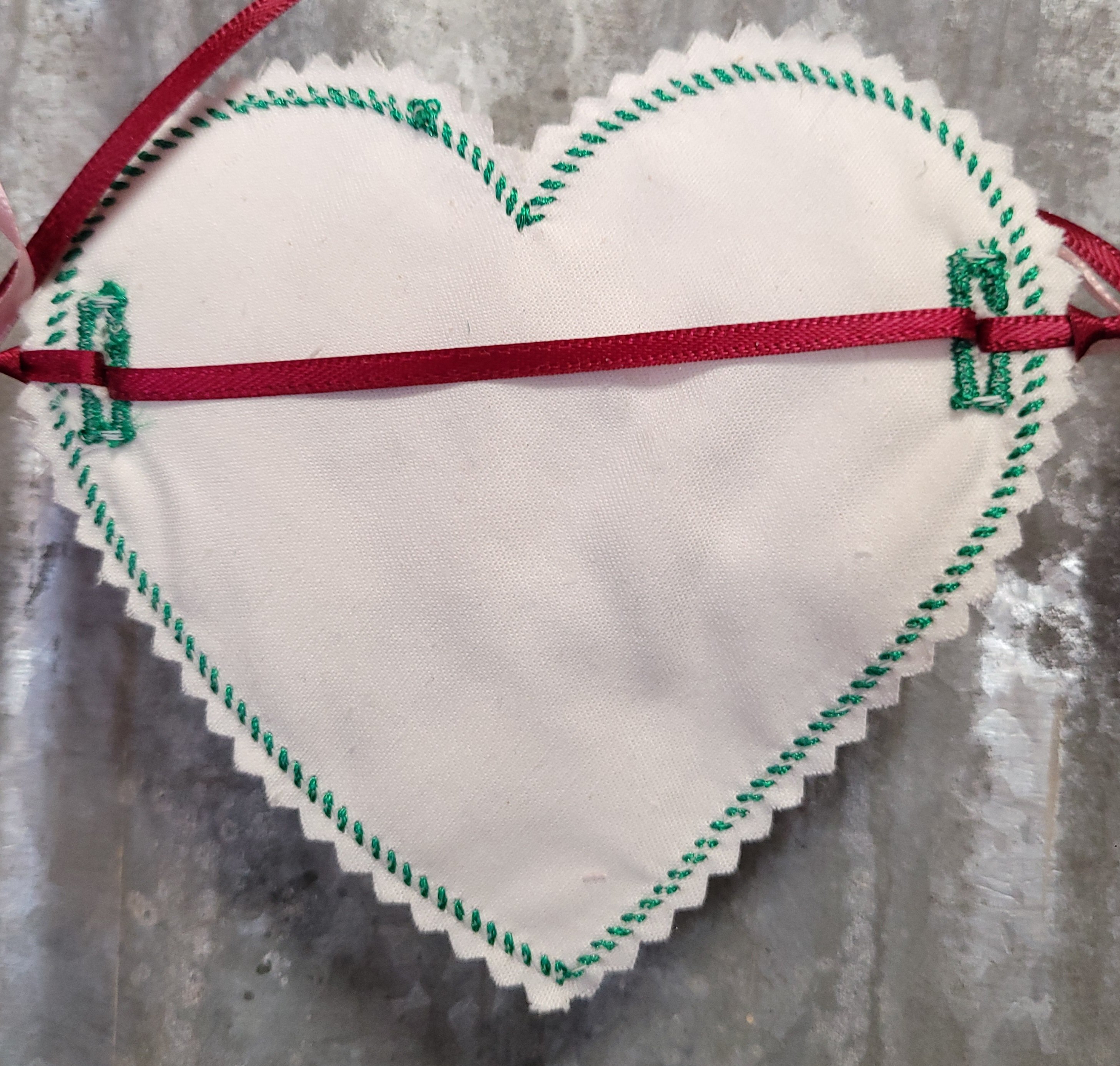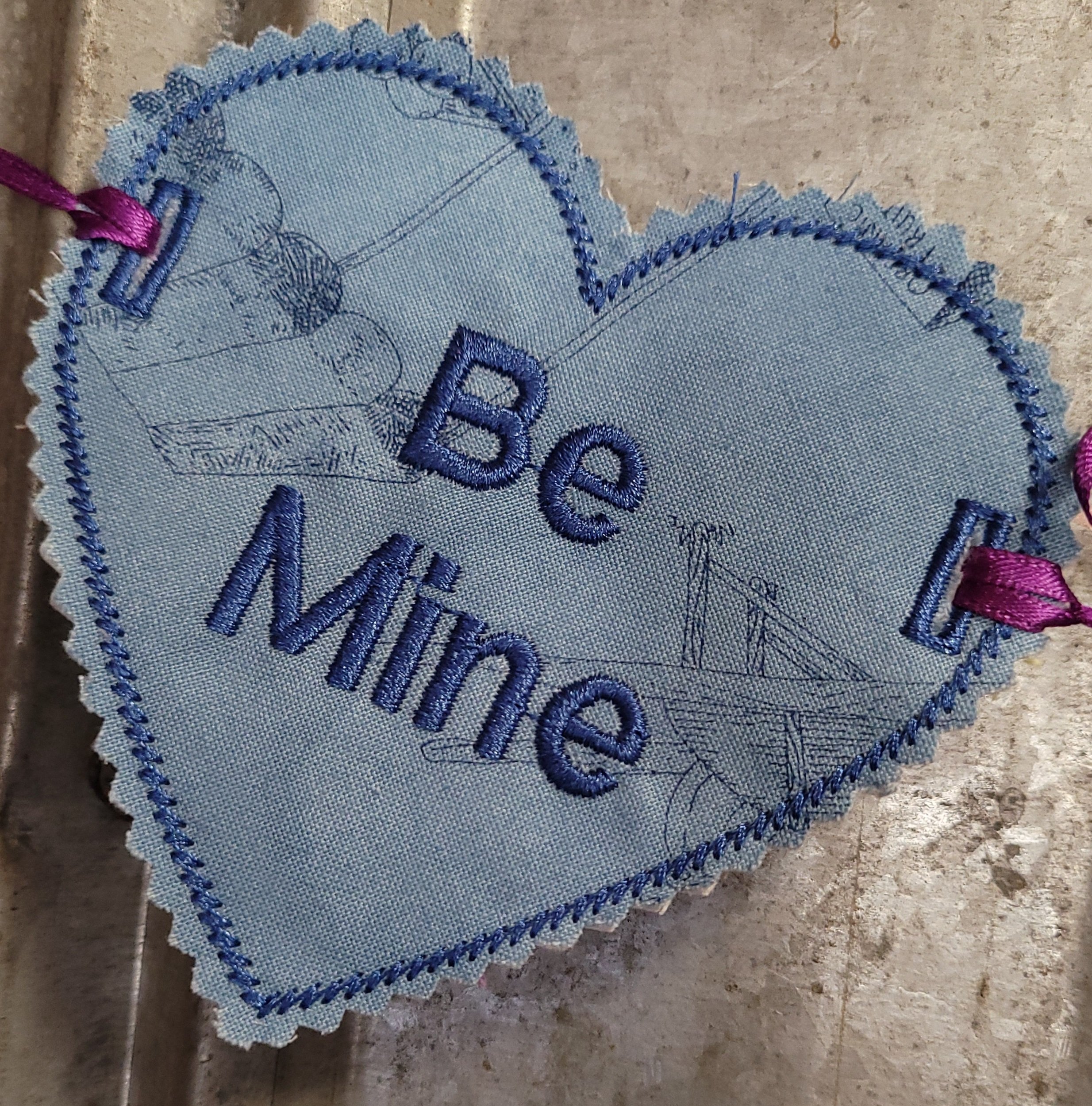 Not just for a valentine! Order customized hearts with your own message or your sweethearts name. Subject to available fabrics and thread.