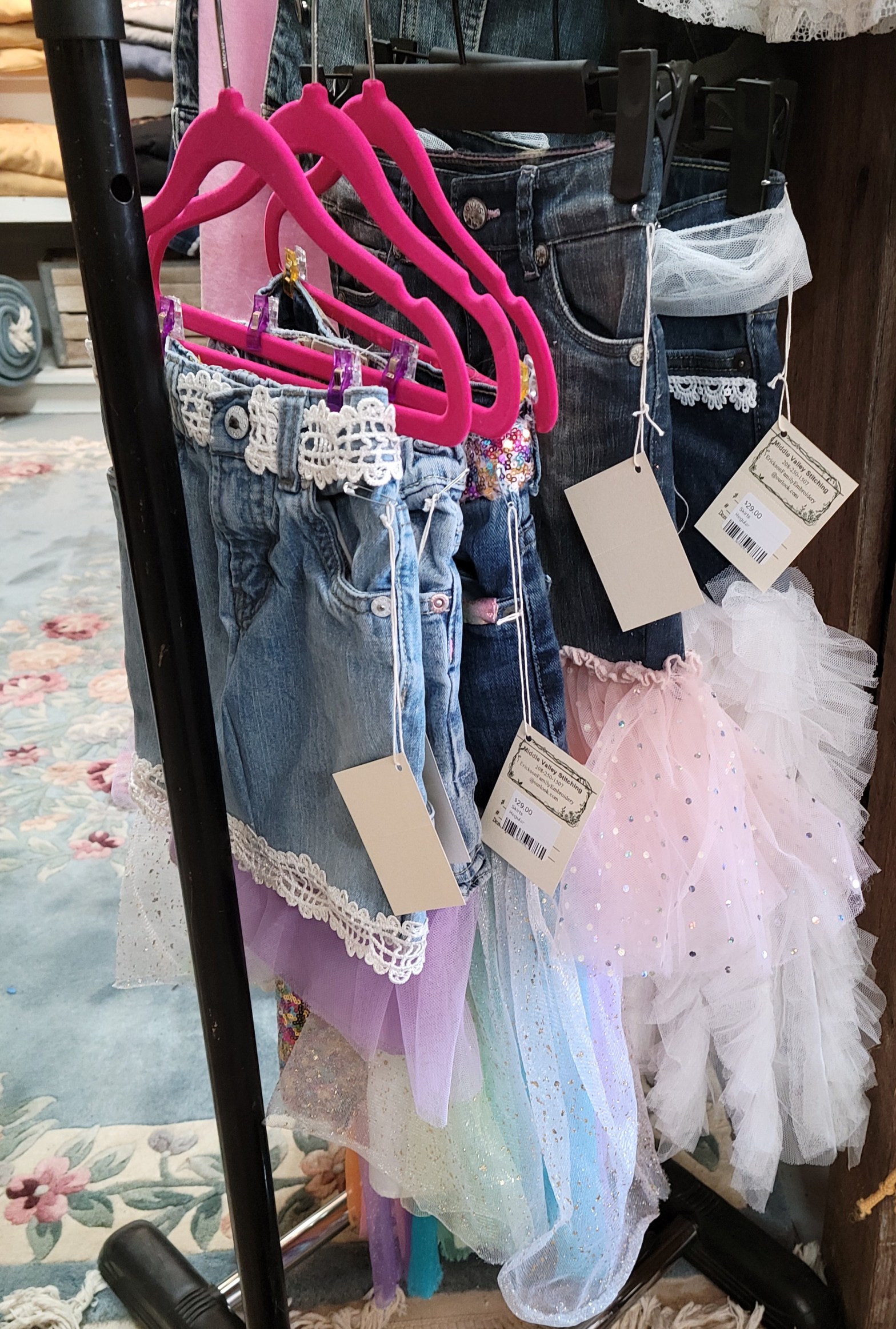 Spring skirts for little girls are here! Bring some fun and fashion to your favorite little girl with an upcycled denim skirt from Middle Valley Stitching. Looks great paired with a favorite t-shirt or matching sweater. Currently available at the Merc at Station 30 located at 35 E Commercial St, Weiser Idaho. Limited stock so hurry in before they are gone!